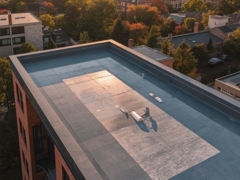 Despite newer materials growing fast, built-up felt still makes up around 40 percent of installations, largely because of its lower upfront cost. Felt roofing consists of layers of felt material bonded together, often with bitumen. This represents the low cost end of flat roof materials.