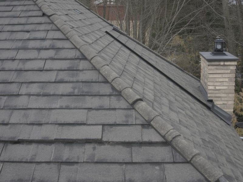 Ridge tiles sit along the peak of your roof. When the cement bedding fails or wind gets under them, you'll see gaps that let rain straight through.